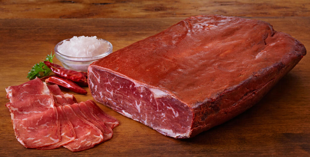 This meat, usually made with a whole bird, is a special dry cured meat. It's carefully cleaned, rubbed on highly alcoholic spirits, salt and peppers.